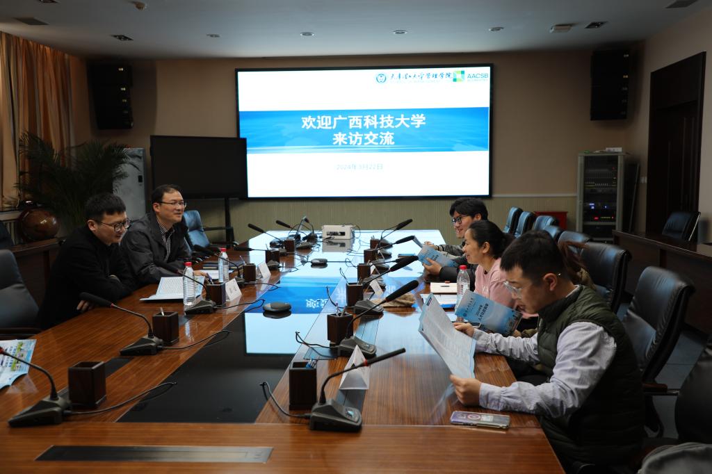 近日,管理学院优秀校友、广西科技大学土木工程学院副院长郭亮一行到管理学院开展调研交流,并与博士生进行座谈,学院相关负责同志、博士生参加会议。
