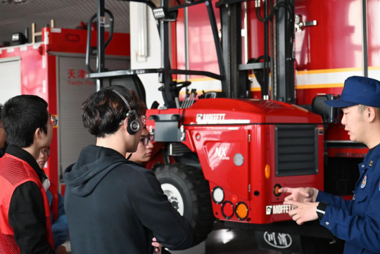 3月16日,机械工程学院师生赴西青区开发区消防救援站参观,学习消防知识,近距离体验消防器材使用。
