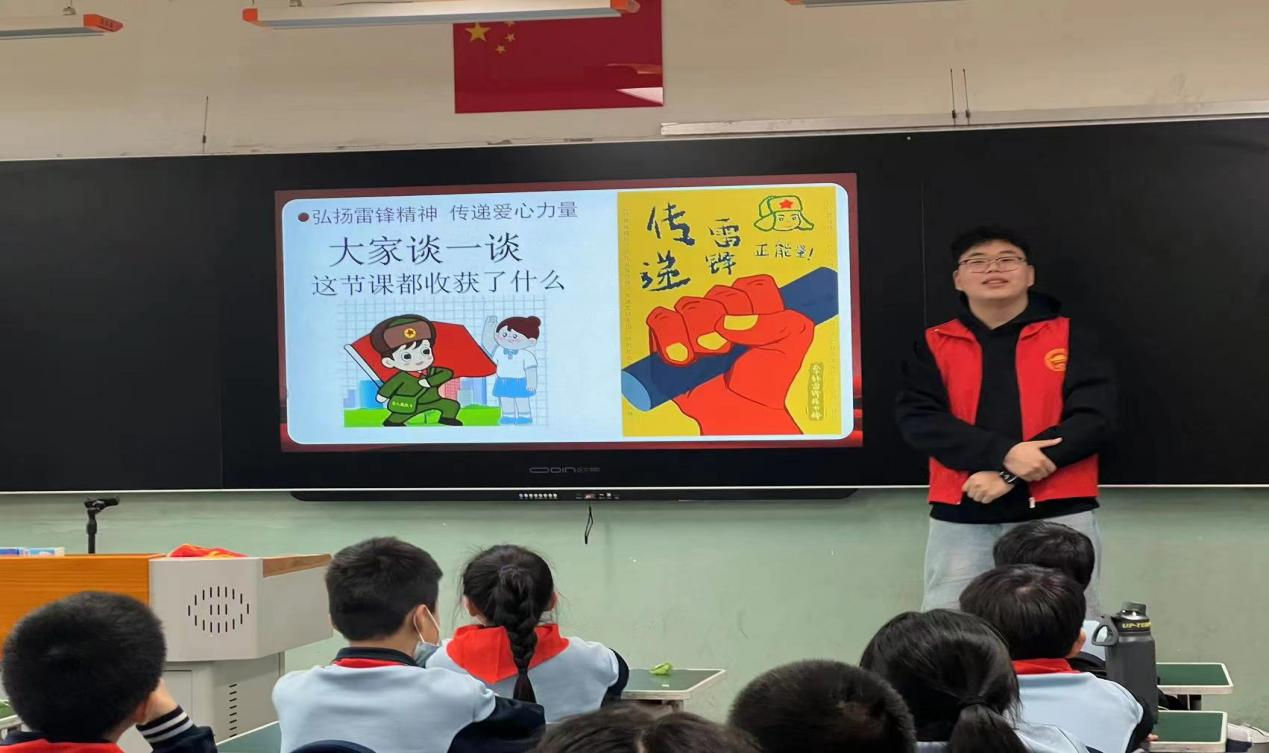 志愿者们围绕学雷锋、雷锋精神、雷锋事迹、学习雷锋精神四个方面进行讲解,全面阐述了雷锋精神的丰富内涵,并通过观看视频、互动问答等方式,帮助同学们更加全面的了解雷锋和雷锋精神,更加生动的学习雷峰同志的优良品质,同时也鼓励引导同学们积极参与志愿服务活动,用实际行动弘扬和践行雷锋精神。