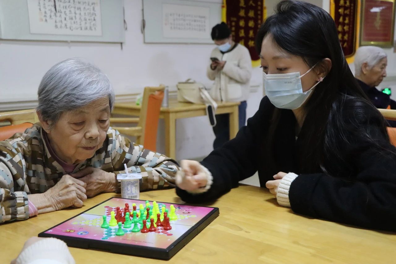 活动中,青年志愿者们仔细聆听老人们的生活经历和故事,关心他们的身体状况,陪同老人们一同开展文娱活动,给老人们送去温暖。