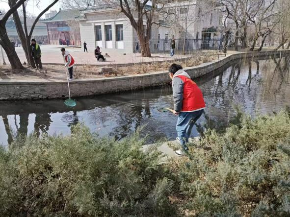 志愿者们还走进天津市人民公园,开展公园清扫志愿服务活动。志愿者们分组展开行动,深入到公园的角落,对公园的卫生死角、白色垃圾、烟头等进行逐一清除,并协助工作人员对河面垃圾进行打捞,将口号变为行动,将雷锋精神践行在实际行动中。