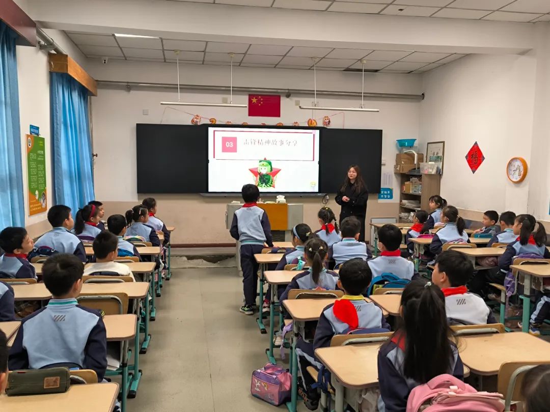在鞍山道小学,志愿者与小学生们共同参加升国旗仪式,并以“传承雷锋精神,奉献青春力量”为题进行国旗下演讲,呼吁青少年积极弘扬雷锋精神,从身边小事做起,用实实在在的行动向雷锋同志学习,做新时代优秀少先队员。