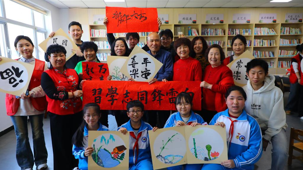 在老年书画活动室,同学们挥毫泼墨,用文字为老人们送去祝福。“平安喜乐”“福泰安康”“国泰民安”……一笔一句皆寓意美好祝福,一撇一捺尽显中华文化传承。热爱书法的孙爷爷表示:“很高兴看到孩子们对笔墨书法的热爱,希望我们的传统文化能在一代代的接力中发扬光大,也希望能经常与大家互动交流,感受年轻人的热情和活力。”