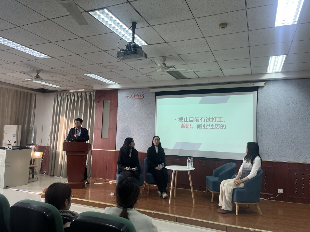 访谈中,杨松学长详细讲述了自己的学习生涯、职业选择、工作经历等内容,与同学们进行深入交流,为同学们答疑解惑,并建议同学们要充分了解自身现状,学会独立思考,做好终身规划,锻炼职业素养,努力提升就业能力。