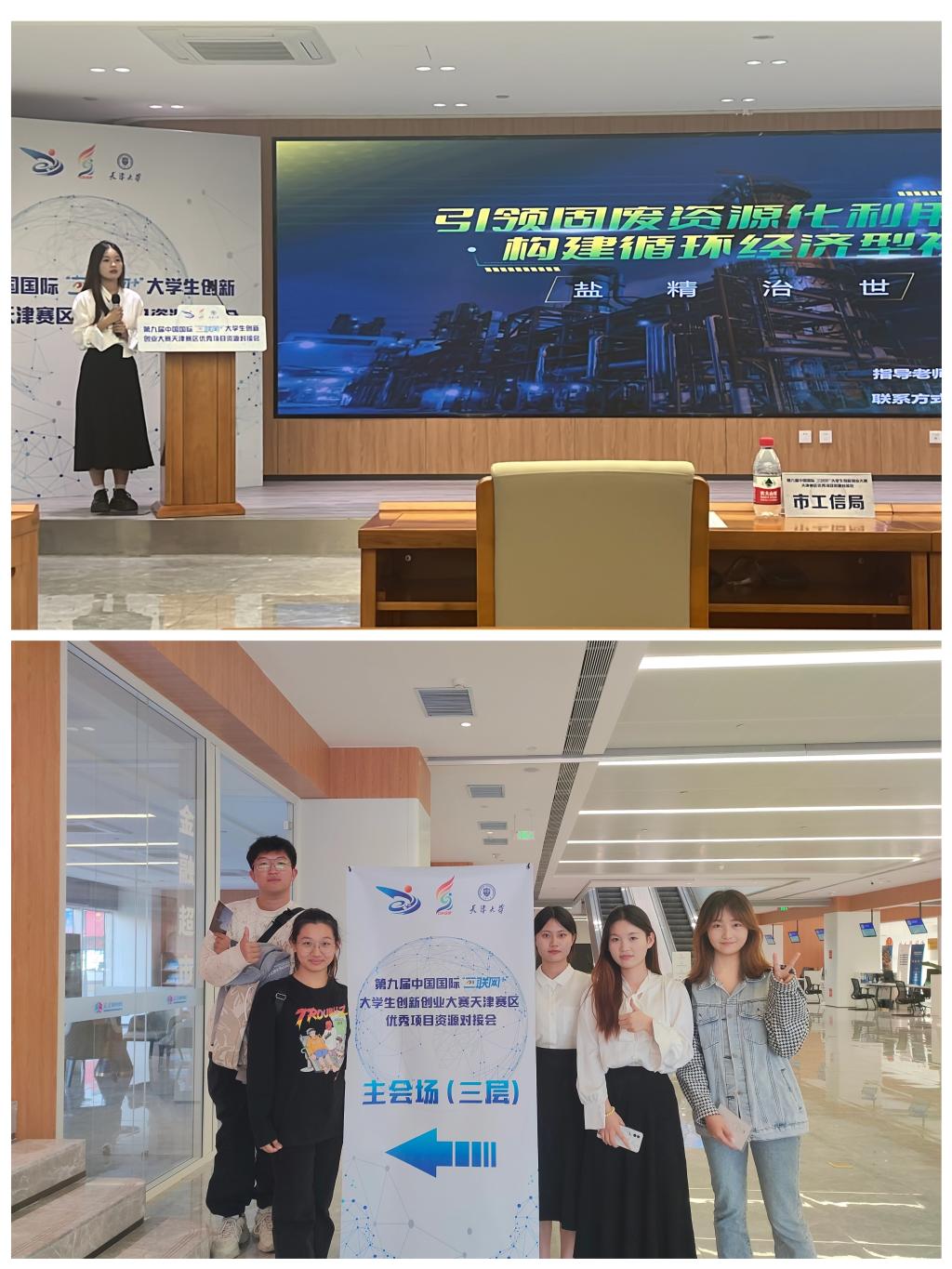 近日,由天津大学主办,北洋海棠基金、天津天开发展集团有限公司等承办的第九届中国国际“互联网+”大学生创新创业大赛天津赛区优秀项目资源对接会(高教主赛道)在天开高教科创园核心区天津科技广场4号楼三层报告厅举办,来自各大高校的十五个优秀项目获邀参与路演,我校环境科学与安全工程学院教师李梅彤、袁文蛟指导的“盐精治世”项目团队受邀参会。