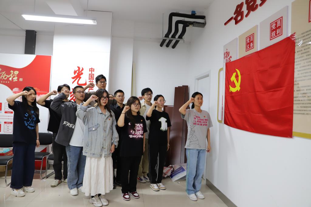活动前,全体党员重温入党誓词,面向党旗,庄严宣誓,引导广大党员牢记初心使命。