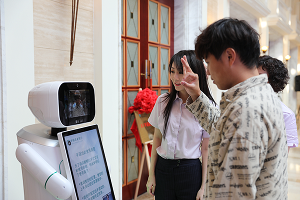 活动中,双方合作研发的成果之一——手语智慧型机器人进行了现场展示。该机器人应用了国内首个自主创新的聋人手语理解大模型——“海河•尔语”,将手语识别和银行虚拟数字员工相结合,形成一套服务于听障人士的金融解决方案,其识别手语能力目前在业界是首创。