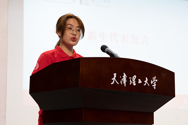 2023级新生代表冯一州讲述了初入天理的温暖感受,号召大家坚定理想信念,勤奋刻苦学习,不负时代重托,践行青年使命。