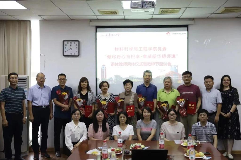 为庆祝第39个教师节,近日,材料科学与工程学院举办退休教师荣休仪式暨教师节座谈会,邀请荣休的老教师与学院领导班子、新入职青年教师进行座谈交流,畅谈近年来学校学院发展建设情况,听取老教师在立德树人、教学科研、学科建设等方面的意见建议,号召学院教师学习他们坚守信仰、默默奉献、几十年如一日奋斗在教育战线上的红烛精神。