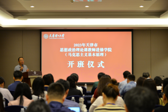 为深入学习贯彻习近平新时代中国特色社会主义思想和党的二十大精神,全面落实全国高校思想政治工作会议精神和学校思想政治理论课教师座谈会精神,深入落实《天津市思政课教师队伍建设综合改革试验区实施方案》等文件精神,近日,2023年度天津市思想政治理论课教师进修学院(马克思主义基本原理)培训班在我校举办,来自全市30余所高校的40余位思政课教师参加本次培训。