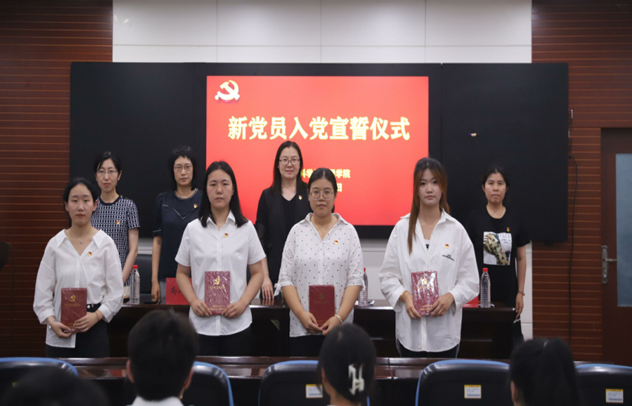 活动在庄严的国歌声中开始。首先学院党委负责同志宣读了接收预备党员的决定。出席仪式的领导、老师们为预备党员佩戴党员徽章,发放党员学习笔记本。随后举行新党员入党宣誓仪式,党委书记从蓉领誓,41名新党员面向党旗庄严宣誓,表达对党忠诚、永不叛党和愿意为共产主义奋斗终身的决心。