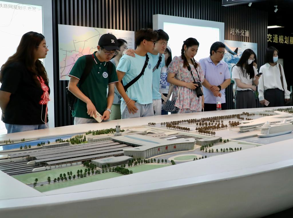 管理学院采用沉浸式“体验+实践”的学习形式,分批次组织学生参观展馆内的城市历史沿革、总体规划、交通布局、津滨双城、海河风貌、名城保护等多个展区,全面了解天津的城市变迁和发展轨迹。沉浸式研学让师生们进一步感受了天津“开近代百年风气之先”的气魄,深入了解了这座城市发展历程以及未来发展蓝图。