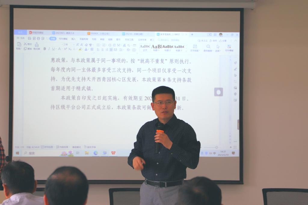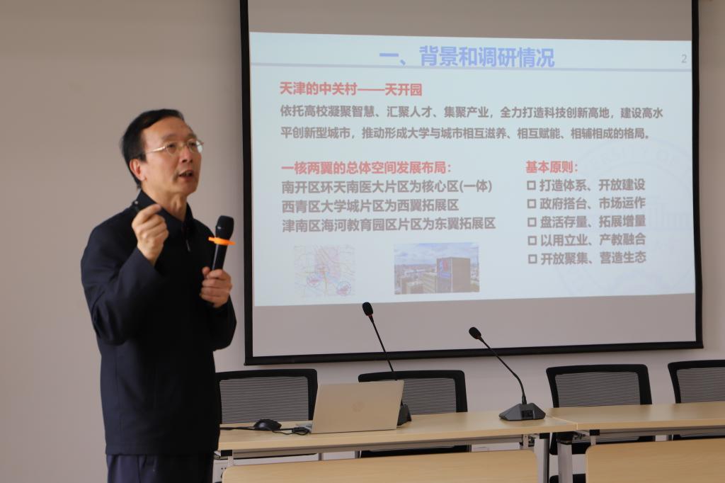 会上,先进技术研究院有关负责人先后对天开园规划方案、功能定位、扶持政策以及当前科技成果转化政策进行了详细介绍。周雪松对天开园背景、建设内容、建设目标、工作进展、规划等进行了详细解读,提出要以天开园建设为抓手,实现学院发展“弯道超车”。
