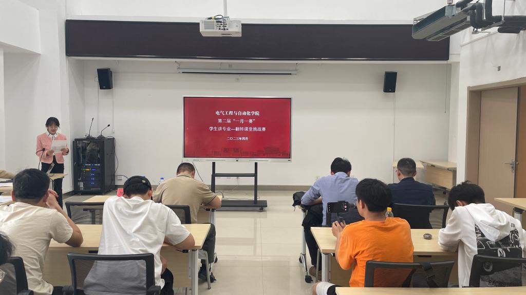 为进一步夯实学风建设基础工作,打造学风建设品牌活动,构建学风建设共同体,助力学生成长新进步,推进清朗学风建设见实效。4月19日下午,电气工程与自动化学院“一月一赛”行动计划之学生讲专业——翻转课堂挑战赛在29号楼459会议厅举办。自动化教工党支部书记倪建云老师、人工智能专业系主任史涛老师、测控教工党支部书记李志伟老师担任评委,各专业辅导员及学生共计80余人参会观摩。