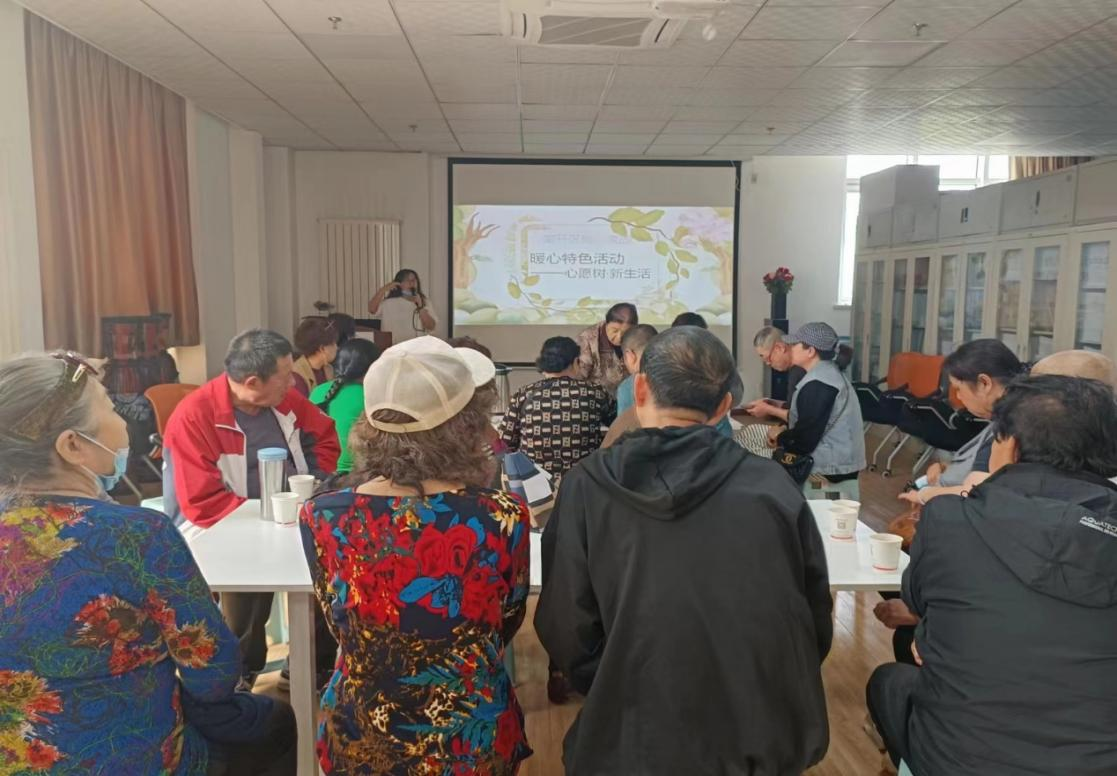 活动开始,志愿者带领老人们开展“心愿树·新生活”主题剪绘活动。在志愿者的引导下,老人们回忆过往美好经历,进行交流分享,志愿者们认真倾听,鼓励老人们以绘画的方式重启幸福回忆,将美好期待一“剪”而就,并积极为他们提供绘画和剪纸的新思路、新想法。最后,志愿者陪同老人们一起,将自己的剪绘作品粘贴到“心愿树”上,共同记录下过去的温暖瞬间以及对未来的美好希望。随后,志愿者组织老人们参与到旗袍、汉服的试穿活动中。一位位“民国风”的老人闪亮登场。
