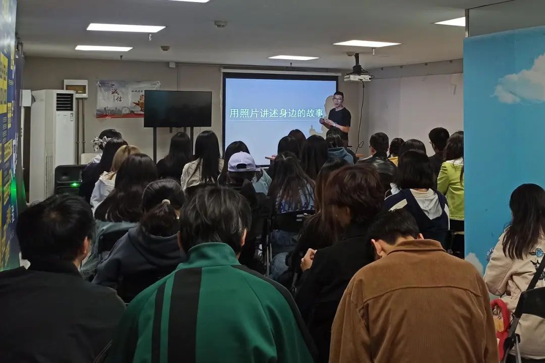 为丰富同学们的课余生活,推动摄影爱好者交流,提升同学们的综合素质。4 月 22 日,社会发展学院邀请南开大学摄影老师高鹏,在天津百脑汇举办了专题为“感受光影温度,掌握专业技能”的高校联盟摄影沙龙活动摄影沙龙讲座,同学们踊跃参与。
