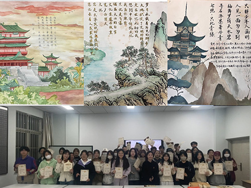 此次活动共招募两个学院40名学生参与其中,围绕学院特点,开设6次朋辈课堂,遴选两个学院优秀研究生或推免学生担任朋辈导师,以语言文化学院学生和艺术学院学生结对学习的形式,共同完成课程内容。6次课程分别为:身临其境,“英”你精彩;新手村ps教程与排版技巧;管城春满,云蓝玉暖——文字的“信”“达”“雅”;以摄影之本,绘真实人像;厚涂插画和平面作品赏析;远游有感,细溯语源——留学经验分享与日语基础漫谈。除了6次课程,活动还以传统文化和公益发展为题,发布“诗情画意”原创诗文配图和“益言艺语”公益视频创作两个题目,鼓励同学们发挥专业特长,在合作协商和思维碰撞中共同呈现出一件件文艺作品。