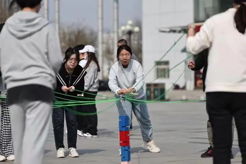 室外场的“翻斗花园”活动中,各小组跟随引导员轮流参与到游戏之中,无论是考验默契和协调能力的“合力建塔”“摸石头过河”,还是对反应力和精准度都要求极高的“七手八脚”和“套圈”,每组同学相互配合照应、彼此尊重勉励,认真参与,建立默契。在最终环节“骑龙游戏”中,各组成员同心协力、踊跃争先,欢笑声与加油声此起彼伏,大家在游戏中敞开心扉、放下压力,展现出了无限的朝气与活力,赋予了本次活动极佳的意义。