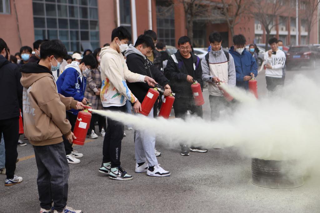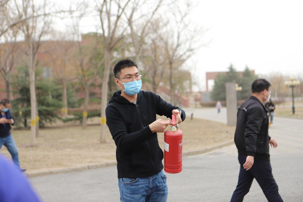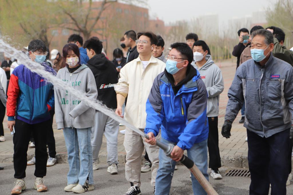 在实战演练开始前,保卫处刘博洋老师讲解了典型的高校火灾真实案例,介绍了消防器具的使用方法。紧接着,保卫处工作人员还现场演示了可控火灾处置方法,并指导师生实际演练了干粉灭火器、喷水枪等的使用,提升了师生对消防器材的使用能力。