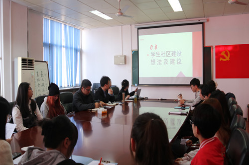 本期微沙龙主要围绕“一站式”学生社区建设、新学期学生工作规划两个议题开展。会上,学院分团委学生会、学生社团骨干结合工作实践依次发言,从思想引领、制度建设、党建融合、特色活动等四个方面汇报交流。并就如何发挥好一站式学生社区在清朗学风建设、选树党建示范岗、网格化管理服务等方面,进行了深入讨论交流,提出建设意见。活动气氛轻松活跃,师生频频互动。