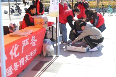 “衣”旧温馨,献出爱心。学院青年志愿者团队在朝阳广场组织开展“‘衣’旧温馨,献出爱心”回收旧衣物活动。同学们积极上前询问捐衣相关事宜,将自身的闲置旧衣捐出。志愿者们到学生宿舍回收搬运,在活动地点进行衣物的整理、分类和打包。捐赠者与学生互相协作,展现出温暖和谐的现场氛围。