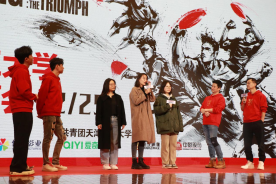 主创人员登台与天理师生进行了深入交流,未能到场的邓超导演发来视频问候。