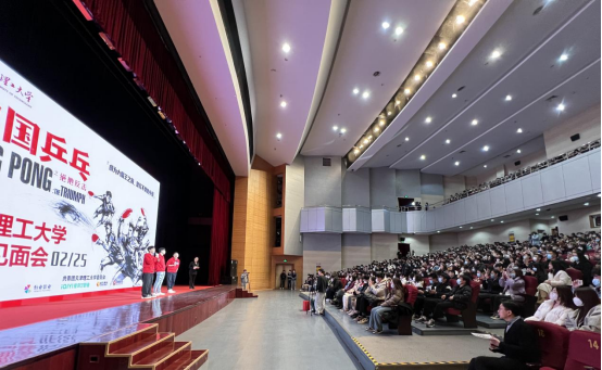 影片《中国乒乓之绝地反击》由真实事件改编,讲述了90年代初中国乒乓被“欧洲列强”碾压跌入低谷时,留洋教练戴敏佳请缨回国临时组建队伍带领着新兵老将刻苦训练,1995年在天津世锦赛绝地反击夺得冠军的故事。到场师生跟随影片穿越30余年时光,回到那段艰风云激荡的乒坛岁月,见证了中国乒乓力量从无到有,从弱到强,从低谷到顶峰,重回巅峰的风雨之路。跌宕起伏的电影情节,让观众不时阵阵欢笑,也几度湿润眼眶。