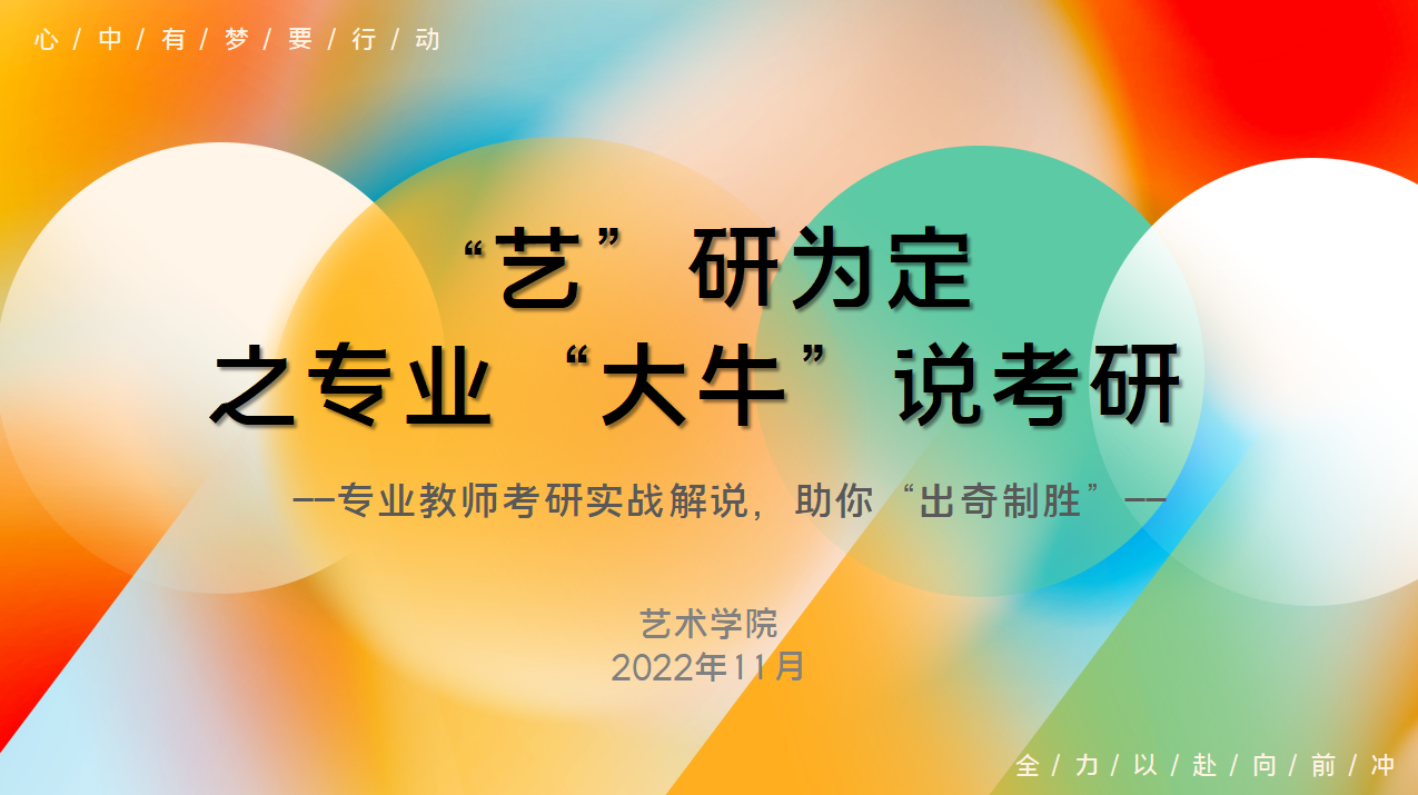 为扎实推进学风建设,营造浓厚的学习氛围,日前,艺术学院举办“艺研为定”考研指导讲座,邀请学院专业教师与同学们分享相关备考经验。学院备考学生100余人参加本次指导交流活动。