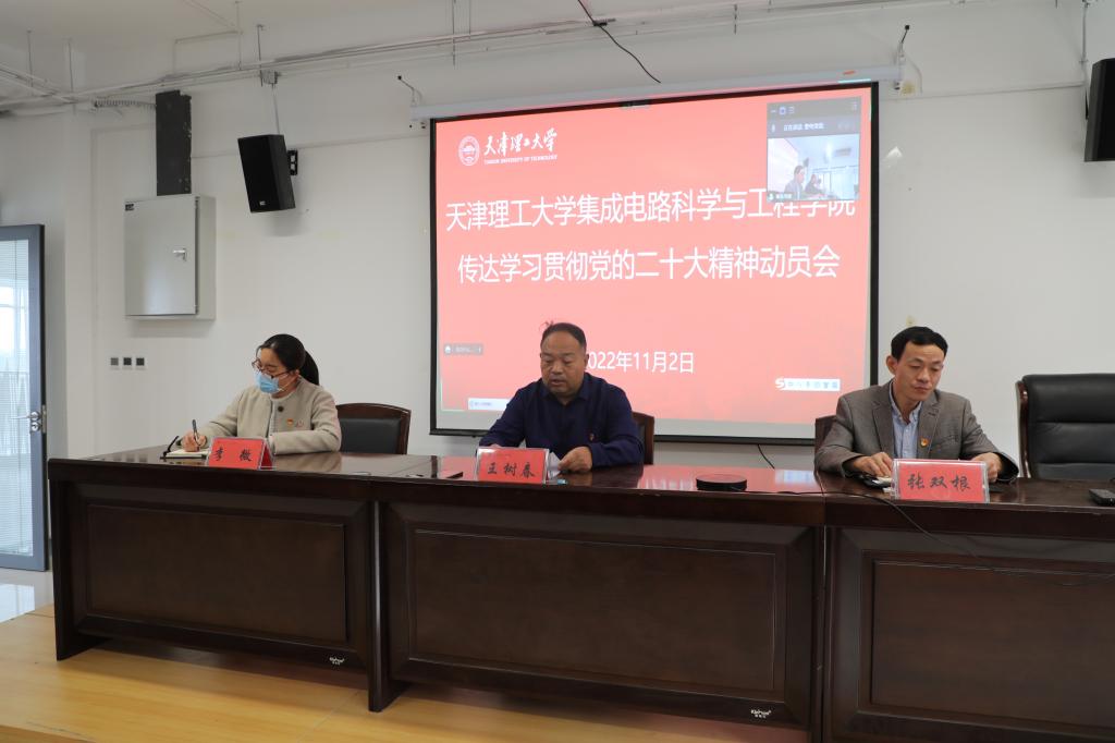 日前,集成电路科学与工程学院党委组织召开学院传达学习宣传贯彻党的二十大精神动员会。会议由学院党委负责人主持,学院党委委员出席会议,全院师生通过线上线下形式参加会议。