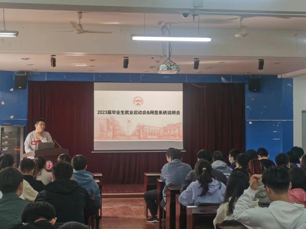 为全面落实党中央、国务院“稳就业”“保就业”有关决策部署,进一步推动就业工作,切实做好毕业生就业服务,10月19日下午,机械工程学院召开2023届毕业生就业启动与就业系统说明会,就业辅导员杨奕老师及全体毕业生参加了此次会议。
