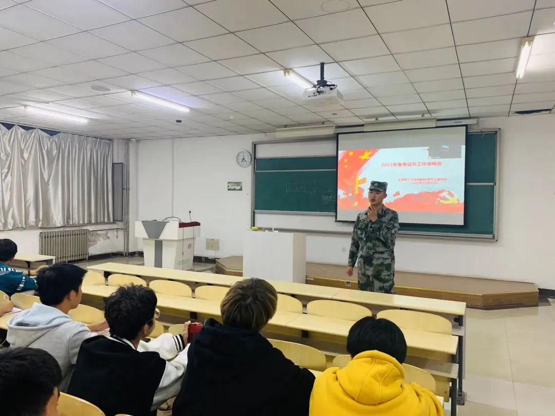 本次会议采用线上线下相结合的方式进行,会议邀请到2020级材料专业退役大学生士兵王鹏,他围绕国防意义、大学生参军优惠政策、入伍条件要求、入伍基本流程方面向同学们作了详细的介绍。这让同学们对征兵工作有了初步的了解。其次他结合实际情况重点讲述了退役大学生士兵考研专项计划与安置政策。最后他给大家分享了自己的军旅故事,他表示军队生活虽然很艰苦,但却值得用一生去铭记,参军从来不是一条狭窄的路,相反它会拓宽我们的人生选择。他积极鼓励青年大学生参军入伍,一起传承红色基因,携笔从戎保家卫国,为祖国国防事业贡献一份自己的力量。学院征兵工作负责人唐思易就相关征兵事项做了进一步补充说明,并寄语大家不负韶华、抓住机遇,用实际行动书写属于自己的壮丽军旅篇章。宣讲会结束后,王鹏耐心解答了同学们提出的问题。