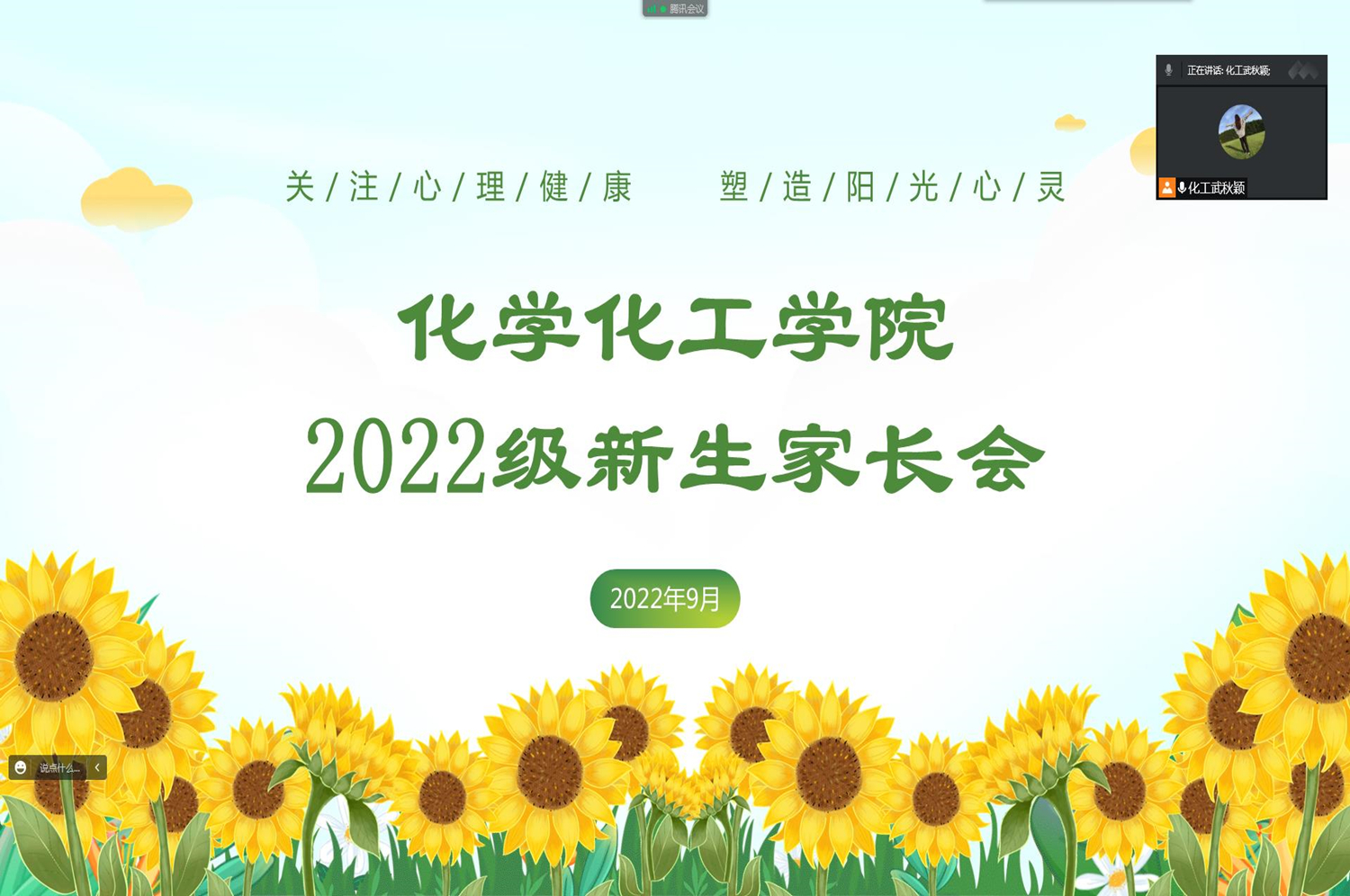 为持续加强家校沟通,帮助家长提升心理健康问题识别和处理能力,共同承担学生教育疏导责任,化学化工学院于9月9日上午利用腾讯会议召开2022级新生家长会,学院新生辅导员、2022级本科生家长参与了此次会议。