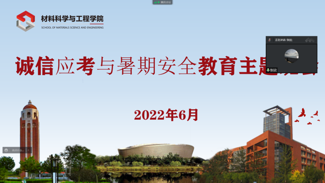 为做好学生诚信教育,积极营造清朗学风的良好氛围,加强学生暑期安全教育,近日,材料学院面向全体本科生召开诚信应考与暑期安全教育主题班会。2019级、2020级以及2021级全体班主任主持召开班会。