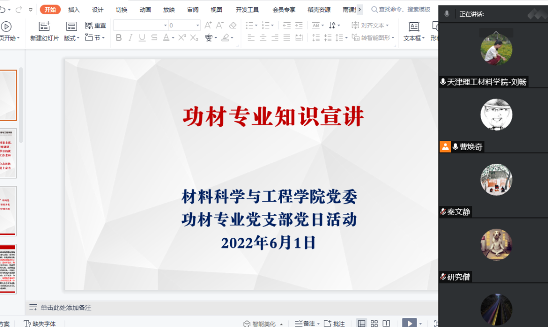 功材专业党支部结合本专业的实际情况,联合功材本科生党支部开展“功材特色·引领共建”主题党日活动,以促进学生对本专业的全面了解,提高学生专业认知,激发科研兴趣。专业教师的细致讲解,解答了部分学生提出的“自己所学的专业有何用”“毕业后不知做什么”等问题,使学生对专业有了更加清晰的认知。通过对研究方向的生动介绍,学生们更加感受到功能材料专业紧跟国家需求,所做的实验是有趣的、有意义的,增加了学生进入实验室开展科学研究的动力。