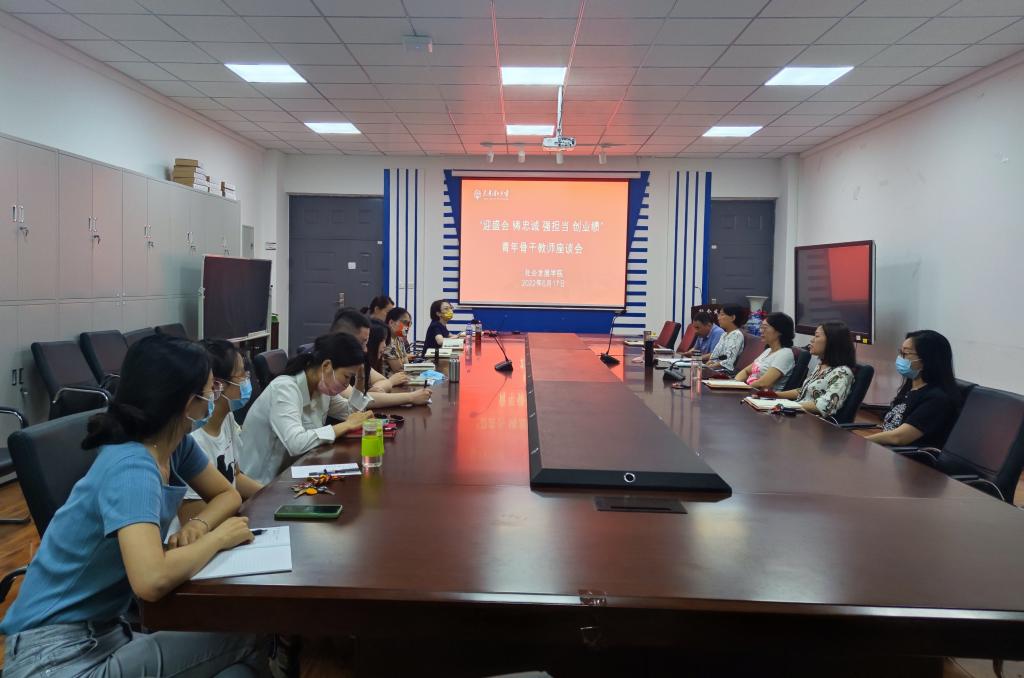 为扎实推进“迎盛会、铸忠诚、强担当、创业绩”主题学习宣传教育实践活动,进一步加强学院教风学风建设,6月17日,社会发展学院召开青年骨干教师座谈会,学院领导班子、青年骨干教师代表参加了座谈。