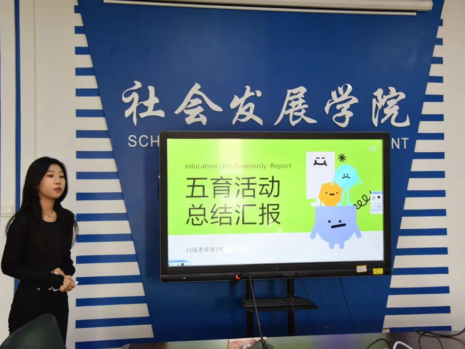 评比开始,班级汇报人按照抽签顺序依次进行成果展示。院党委副书记贾琳梓贾肯定了各班活动取得的成绩、收获的成长,并勉励各班级继续为“和谐并进,人人出彩,人人健康”而努力。最后,社工2班获得一等奖,老年学2班、社会学1班获得二等奖,社工1班、社会学2班、老年学1班 获得三等奖。