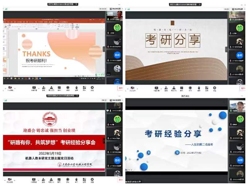 为认真贯彻落实“迎盛会、铸忠诚、强担当、创业绩”主题学习宣传教育实践活动及清朗学风建设要求,机器人教本研党支部组织开展考研云端交流会,机器人专业辅导员、2022届考研上岸的五名学生代表及2019级机器人专业学生参加。
