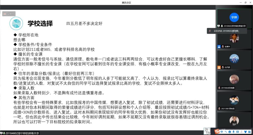 交流助力,前辈传经。支部积极搭建朋辈帮扶沟通交流的平台,邀请优秀学长学姐从学习生活、学科竞赛、考研备考、就业签约以及未来规划等方面传授个人积累的宝贵经验,帮助同学们掌握科学的学习方法和考研经验,充分发挥高年级优秀党员的“传、帮、带”作用。通过开展经验分享会展示支部优秀党员良好的精神风貌,形成榜样力量,营造优良学习氛围,鼓舞同学们向优秀典型看齐。