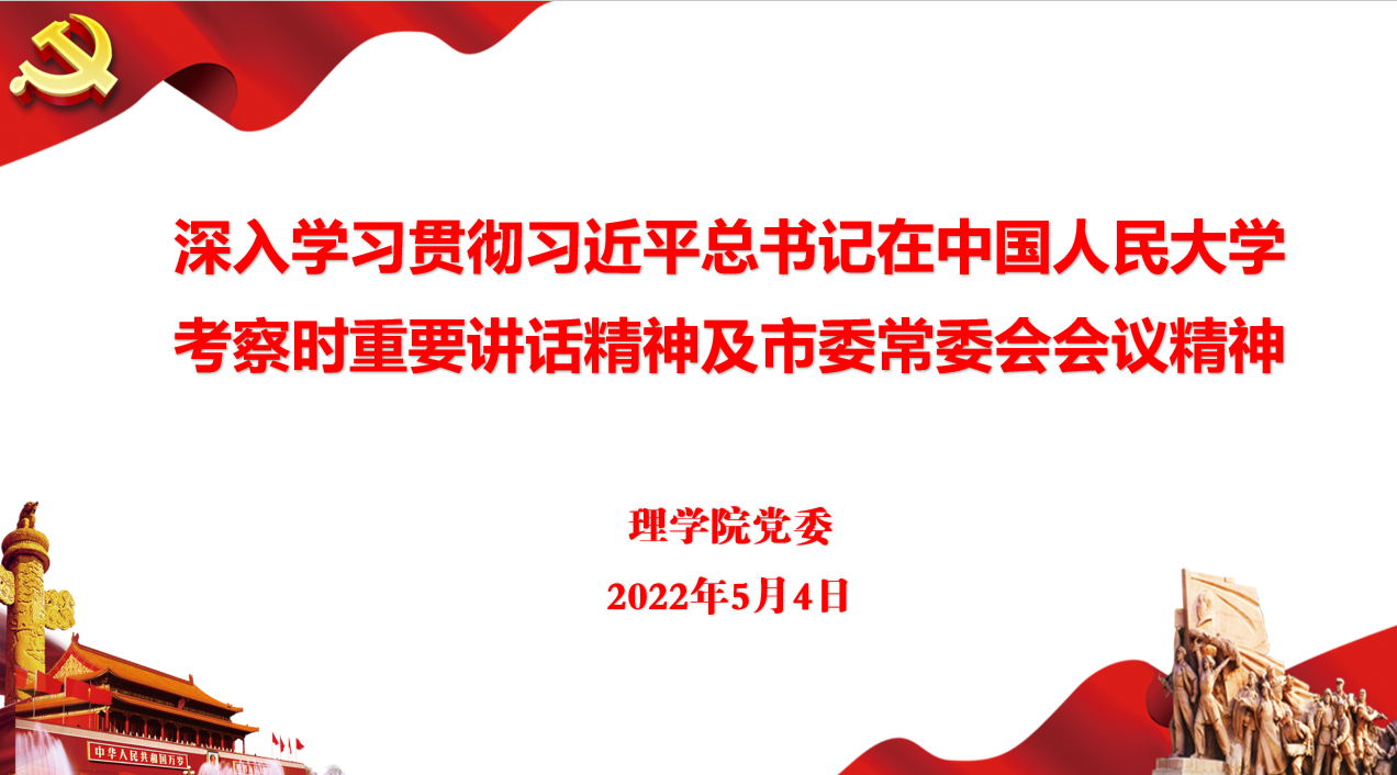 为深入学习贯彻习近平总书记在中国人民大学考察时重要讲话精神及市委常委会会议精神,理学院党委于5月4日采用腾讯会议的方式召开全院教职工大会开展专题学习,学院全体教师参加此次专题学习。