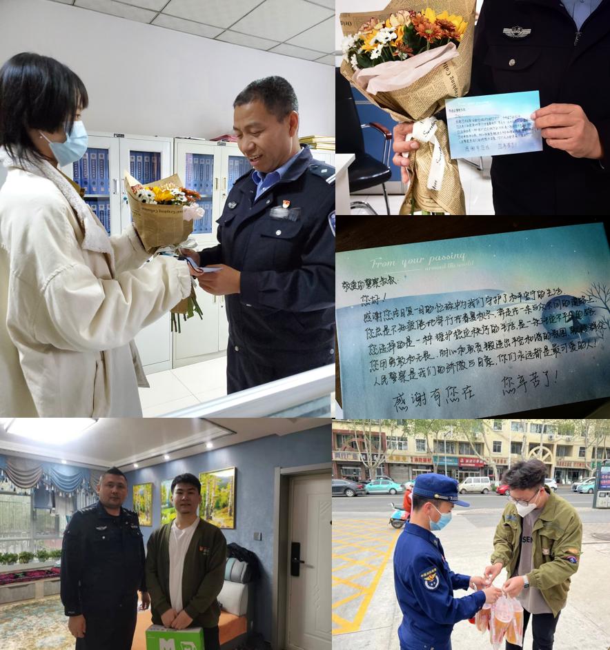 “平凡坚守 感恩有你”一份礼物寄真情。国家安全人员并非遥不可及,而就在我们身边,在平凡的岗位上守护着国家安全。党员们走上街头,给任同安(克拉玛依市中古石油供应处安全顾问)、杨世杰(襄汾县公安局治安大队)、肖静(剑川县消防救援大队)等送去手写贺卡、鲜花等小礼物,明白“因为有了他们,我们才能拥有这样和平安定的生活,他们是最可爱的人!”