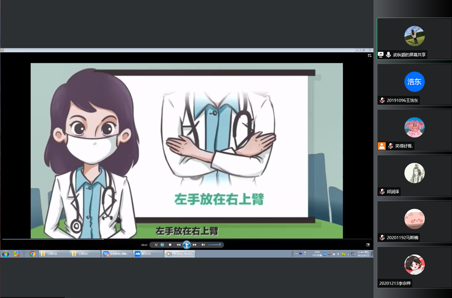 讲座开始,学院心理健康负责教师强调了疫情期间心理健康自我调适的重要性,并围绕“常见的负面心理应激反应”、“怎样调节自己的应激反应”、“如何调控情绪放飞心情”三个模块展开讲解,以理论联系实际,结合经典案例向学生们讲述如何在新冠肺炎疫情影响下调节自我负面情绪,增强学生面对疫情的勇气与决心。最后,学院心理健康负责教师分享了几种简单的减压方法,线上带领同学们开展“蝴蝶拍”、“鸣天鼓”、“耳部按摩”、“提腿摸膝”等放松训练,并鼓励学生们积极在班级、宿舍内进行分享,发挥心理委员和宿舍心理联络员的职能作用,激励学生们正确运用自我疗法缓解心理压力。