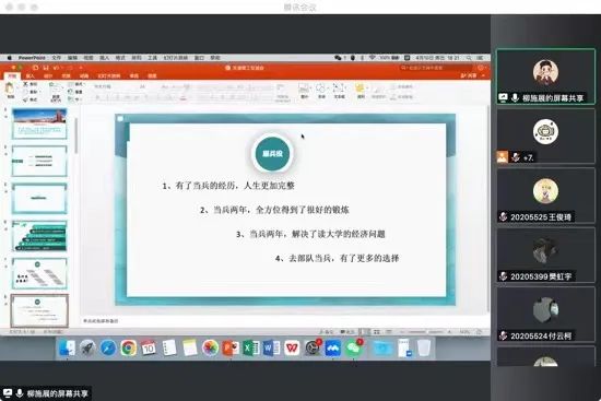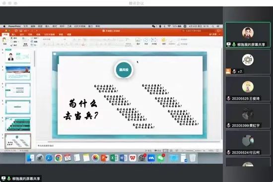 本次宣讲会邀请到学院2020届教育经济与管理专业优秀毕业生柳施展,现工作于杭州电子科技大学军事理论与技能教学中心,主要负责大学生征兵入伍,军事理论教学,军事技能训练,退役军人资助等工作。柳老师结合自身入伍经历,切实从学生角度出发,讲解从军入伍的各项优惠政策,如经济上给家里减轻负担、部队提干、考研士兵专项计划等。
