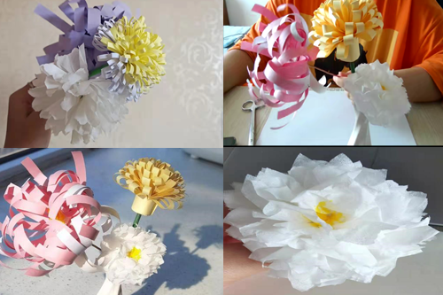 以纸花祭先烈、致哀思。在“劳行育美”系列课堂活动中,学生主要通过学习手工制作纸菊花艺术品祭奠先烈,在纸花中寄托对先烈的悼念与致敬,花开的瞬间流露缅怀之感。学生们利用身边最平常的纸张,学习折叠菊花的花瓣、花蕊,于无声中孕育美丽,将劳动成果化作一朵朵洁净的菊花,对先烈曾经无私的奉献致以由衷地感激之情。参与此次活动的学生表示,能够以足不出户的方式既在清明节这一特殊的节日表达出内心对革命先烈的崇敬之意,也响应了疫情防控政策,对今后劳育、美育课堂的开展形式有了更多的期待。