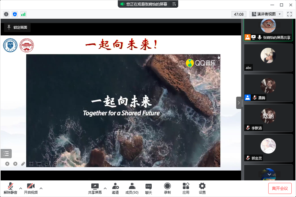 在“硬核青春”篇章中,研究生们分享抗疫故事,讲述如何让青春在奋斗中出彩,让青春在奉献中闪光。在“志愿青春”篇章,首先通过微视频北京冬奥版的《错位时空》,一起回顾了第二十四届冬季奥林匹克运动会开幕式上国旗手手相传、五环破冰而出等精彩画面,引发了在场师生的强烈共鸣和无限动容。随后,活动特别邀请北京师范大学研究生讲述她作为冬奥会志愿者的点点滴滴。在“出彩青春”篇章,大家一起观看视频《书写新时代的雷锋故事》。学生党员纷纷表示,作为新时代中国青年,要对标先进、见贤思齐,书写不负时代、不负历史的青春答卷,为祖国和人民绽放青春芳华。最后活动在云合唱《一起向未来》中落下帷幕。