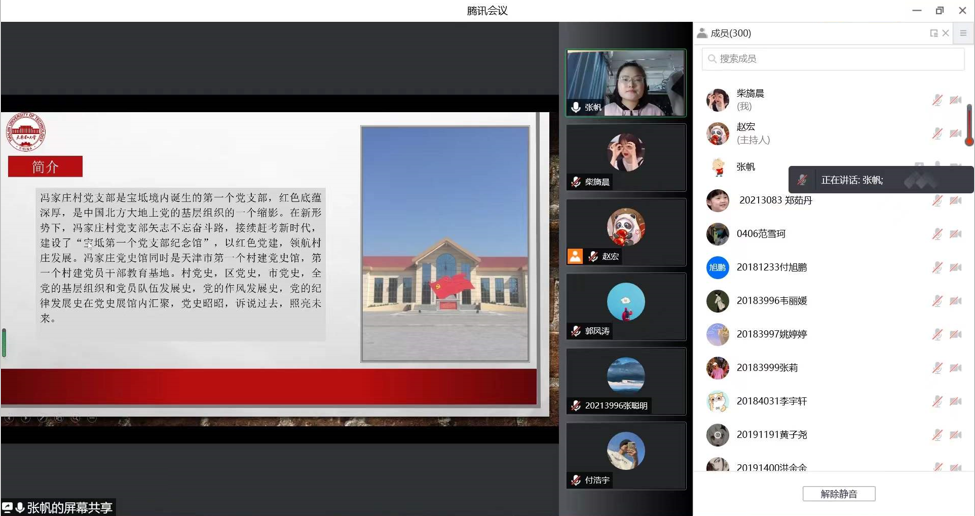 暑假期间,材料科学与工程学院2018级本科生张帆积极参与天津市宝坻区暑期“返家乡”实践活动,在宝坻区尔王庄镇冯家庄村党史馆中担任讲解员,讲好红色故事,为中华民族伟大复兴贡献青春力量。她的事迹获评团中央2021年“我的返家乡实践故事”征集活动优秀作品,张帆鼓励同学们走出课本、走出校园、走向社会,到社会的大课堂上去增长才干、在实践中检验自己。