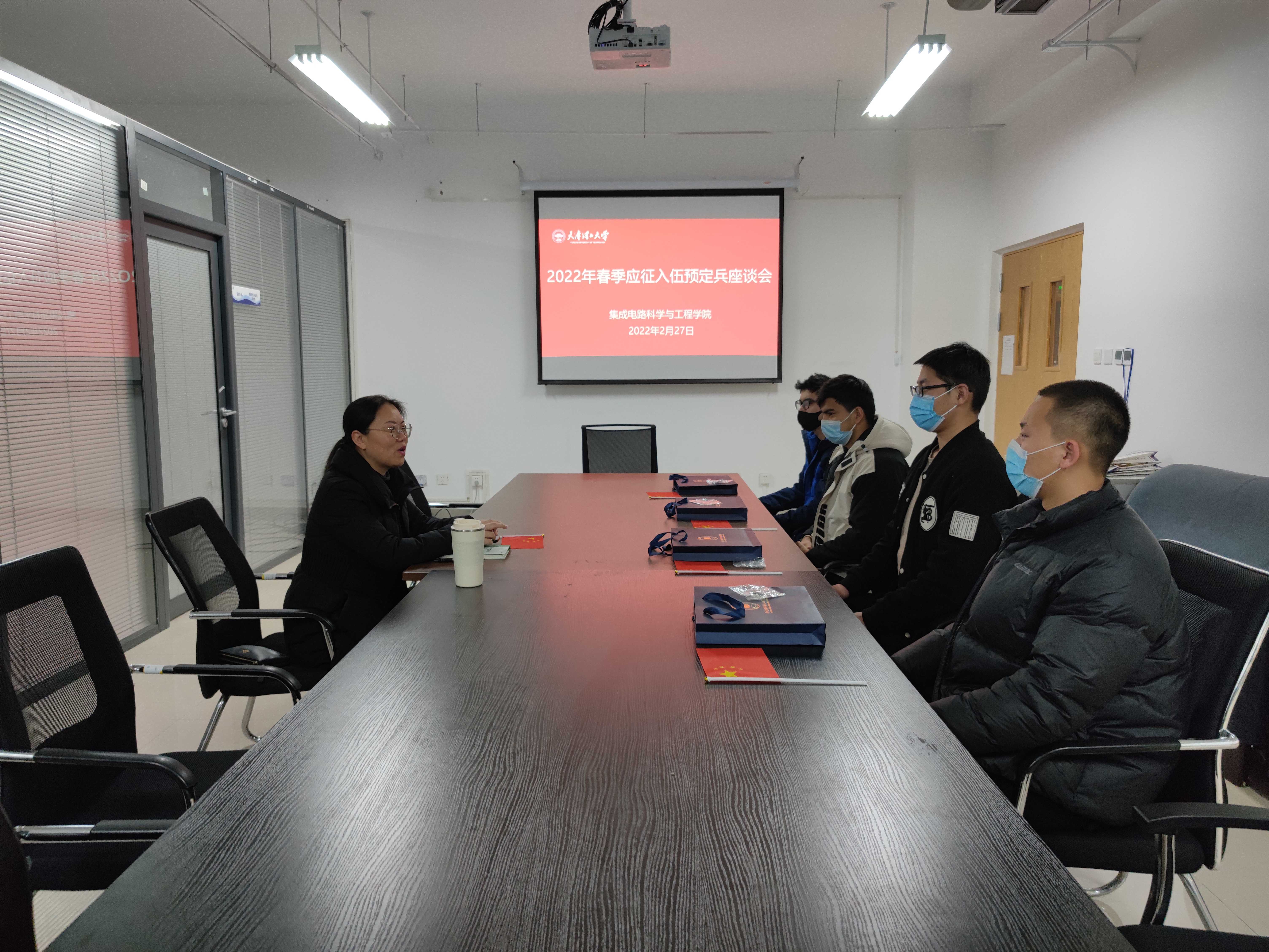 2月27日,集成电路科学与工程学院召开2022年春季大学生预定兵座谈会,学院有关负责人、辅导员代表及4名预定兵同学参加了。