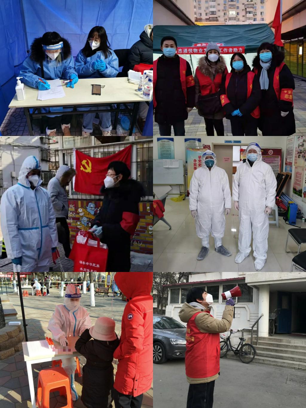 截止15日,管理学院除校内积极开展各项疫情防控工作、力保在校师生健康安全外,共247人次党员干部下沉至社区,于西青区大寺镇赤龙南街所在社区、南开区体育中心街各社区、河西区马场街等多个重点地区开展志愿服务工作,他们穿着防护服完成核酸筛查前的扫码、测温、登记工作,身着志愿者红马甲完成防控一线的联络、转运、宣传工作。
