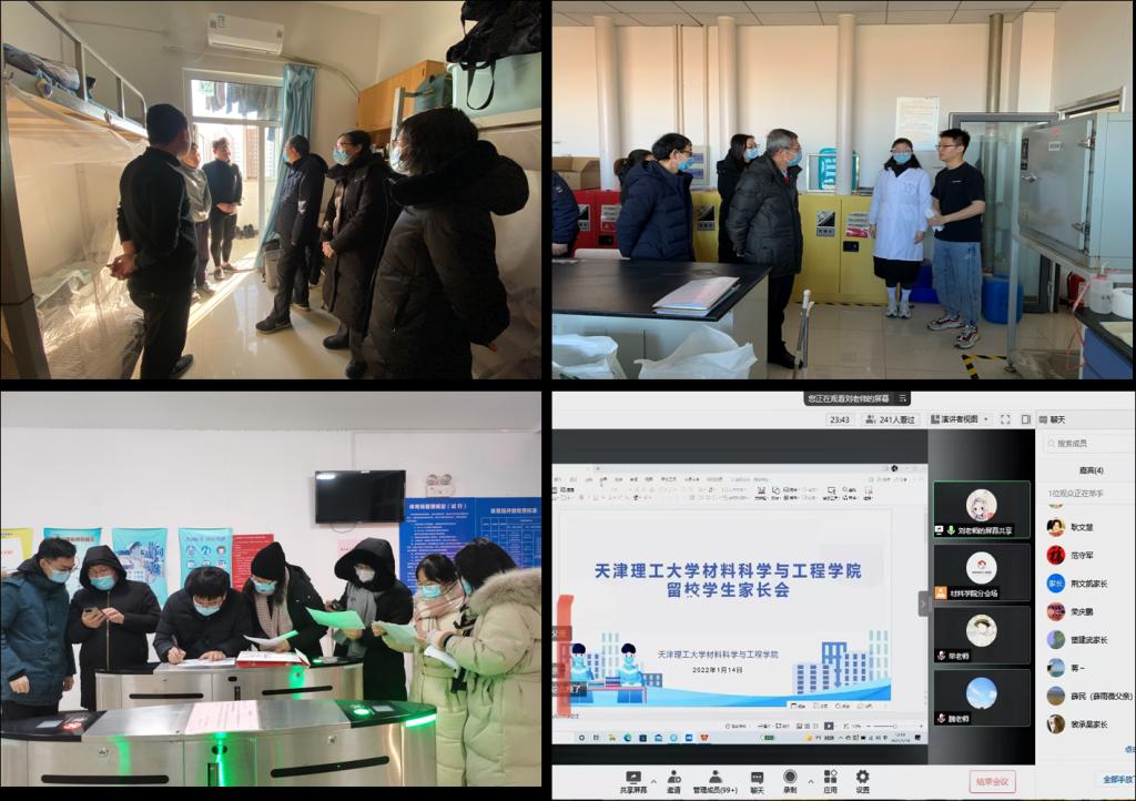 学校学院领导深入实验室、宿舍,了解留校学生情况,叮嘱校园封闭期间的实验室安全。为精准了解同学们的健康状况和出行轨迹,按照教委“四个百分之百”“三个立即”的要求,辅导员老师们彻夜开展排查,每天工作近二十小时,每两小时更新一次数据,确保数字准、底数清、基础实。针对三次全员核酸检测,为减少同学们的等候时间,快速高效完成工作,材料学院的老师们周全考虑、细致安排、做好衔接,用爱心、责任心守护校园安全和师生健康。在做好校园疫情防控和留校学生管理服务的同时,材料学院还召开线上家长会,发挥家校协同优势,让留校学生家长放心、安心。