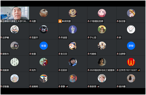 有机光电材料和器件课题组召开线上组会,向同学们介绍天津市疫情防控的整体情况、部署寒假在校学生的科研安排,针对每名同学学习、生活方面的困难,一一予以解答。