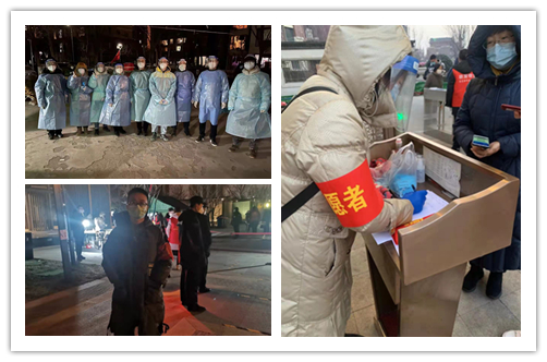疫情就是命令,防控就是责任,学院31名教师党员身体力行、下沉一线,践行共产党员的初心和使命。安长华作为西青抗疫组的组长,在落实好自己抗疫任务的同时还负责做好组织协调工作,经常天不亮就带领志愿者教师奔赴社区执行抗疫任务;王一雷安顿好高危产妇的妻子,义无反顾的投身一线进行志愿服务;而张舜光、刘金彪、刘旭光、张凯林等几位老师在接到下沉任务通知的时候,其实已经自愿报名在社区一线奋斗了好几个日夜……“老师们开始没有料到天气这么冷,好多都冻着了,回家喝点姜糖水继续奋战吧”,“我爱人4点就出发执行任务了,儿子说自己能照顾好自己”“我们这些壮劳力不上谁上?”“正是因为爱人也在一线,所以才更能体会到医护人员的不容易,能在社区为大家服务是我们应该做的”一句句朴实的语言都诠释着作为共产党员的责任和担当。